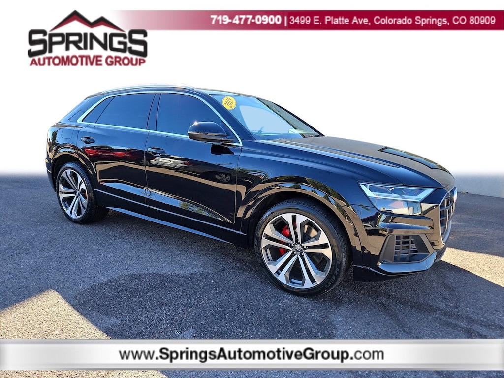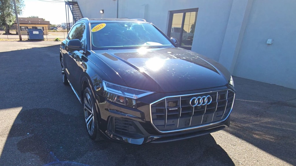 Orca Black Metallic 2019 Audi Q8 3.0T Premium Plus quattro quattro 8-Speed Automatic with Tiptronic 3.0L V6 Turbocharged DOHC 24V LEV3-ULEV125 335hp 10 Speakers, AM/FM radio: SiriusXM, Ambient Interior Lighting Plus Package, Audi Active Lane Departure Warning, Audi Adaptive Cruise Assist, Audi Phone Box w/Wireless Charging, Audi Side Assist w/Pre Sense Rear, Bang & Olufsen 3D Premium Sound System, Cold Weather Package, Driver Assistance Package, Heated door mirrors, Heated Rear Seats, Heated Steering Wheel, Navigation System, Power Liftgate, Power moonroof, Towing 7 Pin Connector, Traffic Sign Recognition.
