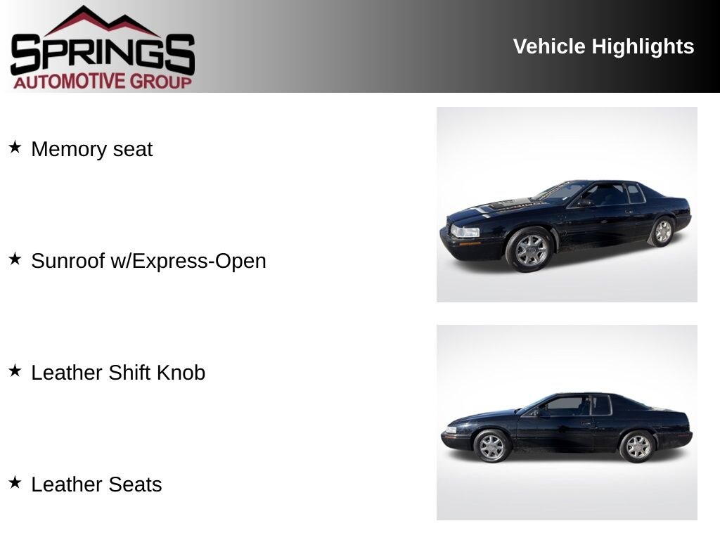 Sable Black 2000 Cadillac Eldorado 2D Coupe ETC FWD 4-Speed Automatic with Overdrive Northstar 4.6L V8 SFI DOHC 300 hp