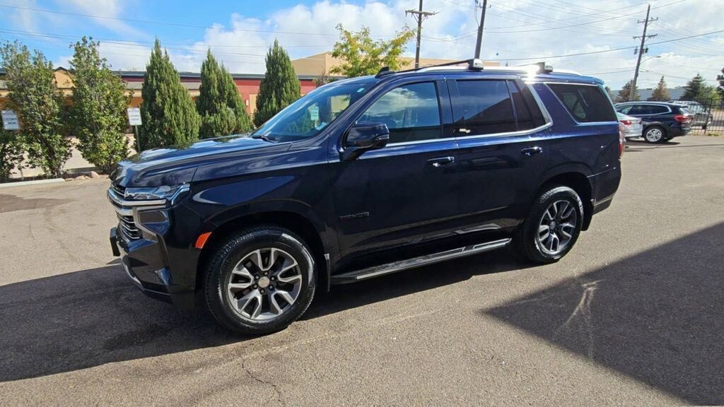Midnight Blue Metallic 2021 Chevrolet Tahoe LT 4WD 10-Speed Automatic with Overdrive EcoTec3 5.3L V8 4WD, Black Leather, 2-Speed Active Electronic AutoTrac Transfer Case, 2nd Row Pwr Release 60/40 Split-Folding Bench Seat, 3rd Row 60/40 Power-Folding Split-Bench Seat, Advanced Trailering Package, Advanced Trailering System, Automatic Heated Steering Wheel, Driver Alert Package, Dual-Pane Power Panoramic Sunroof, Extra Capacity Cooling System, Front & Rear Park Assist, HD Surround Vision, Heated 2nd Row Outboard Seats, Hitch Guidance w/Hitch View, Integrated Trailer Brake Controller, Lane Change Alert w/Side Blind Zone Alert, Lane Keep Assist w/Lane Departure Warning, LT Signature Package, Luxury Package, Max Trailering Package, Memory seat, Memory Settings, Outside Heated Power-Adjustable Mirrors, Power Liftgate, Power Tilt & Telescopic Steering Column, Rear Cross Traffic Alert, Rear Pedestrian Alert.