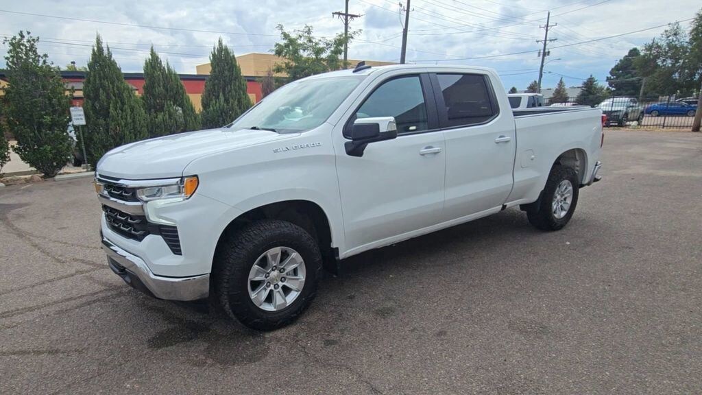 Summit White 2023 Chevrolet Silverado 1500 LT 4WD 10-Speed Automatic EcoTec3 5.3L V8 10-Speed Automatic, 4WD, Jet Black Cloth, 10-Way Power Driver Seat w/Lumbar, 12.3" Multicolor Reconfigurable Digital Display, 120-Volt Bed Mounted Power Outlet, 120-Volt Instrument Panel Power Outlet, All-Star Edition, Auto-Locking Rear Differential, Bluetooth® For Phone, Chevrolet Connected Access Capable, Chrome Mirror Caps, Color-Keyed Carpeting Floor Covering, Compass, Convenience Package, Deep-Tinted Glass, Dual Rear USB Ports (Charge Only), Dual-Zone Automatic Climate Control, Electric Rear-Window Defogger, Electrical Steering Column Lock, Electronic Cruise Control, EZ Lift Power Lock & Release Tailgate, Front Frame-Mounted Black Recovery Hooks, Front Rubberized Vinyl Floor Mats, HD Rear Vision Camera, Heated Driver & Front Outboard Passenger Seats, Heated Power-Adjustable Outside Mirrors, Heated Steering Wheel, Hitch Guidance, Inside Rear-View Mirror w/Tilt, Keyless Open & Start, LED Cargo Area Lighting, OnStar & Chevrolet Connected Services Capable, Power Front Windows w/Driver Express Up/Down, Power Front Windows w/Passenger Express Down, Power Rear Windows w/Express Down, Preferred Equipment Group 1LT, Rear 60/40 Folding Bench Seat (Folds Up), Rear Rubberized-Vinyl Floor Mats, Remote Start Package, Remote Vehicle Starter System, SiriusXM w/360L, Standard Tailgate, Steering Wheel Audio Controls, Theft Deterrent System (Unauthorized Entry), Trailering Package, Wi-Fi Hot Spot Capable, Wireless Phone Projection, Wrapped Steering Wheel.