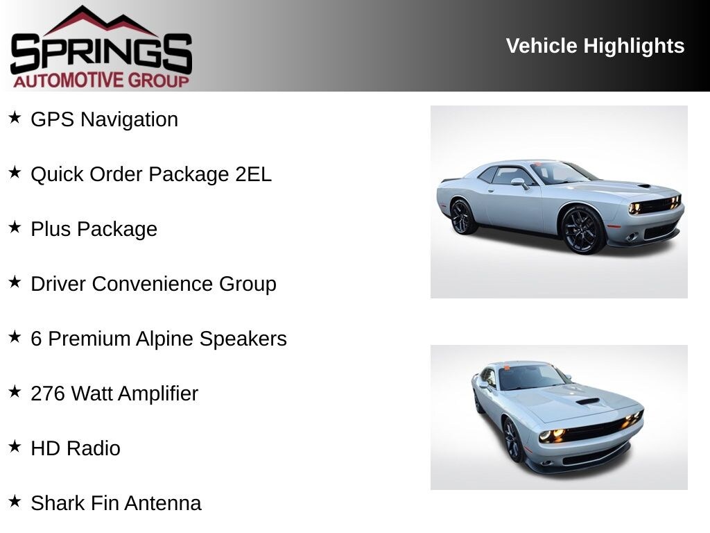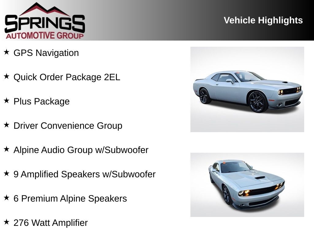 Triple Nickel Clearcoat 2021 Dodge Challenger GT RWD 8-Speed Automatic 3.6L V6 24V VVT 1-Yr SiriusXM Guardian Trial, 276 Watt Amplifier, 4G LTE Wi-Fi Hot Spot, 6 Premium Alpine Speakers, 8.4" Touchscreen Display, Blind Spot & Cross Path Detection, Bright Pedals, Dodge Performance Pages, Door Trim Panel w/Ambient Lighting, Driver Convenience Group, For Details, Visit DriveUconnect.com, For More Info, Call 800-643-2112, GPS Navigation, HD Radio, Heated Front Seats, Heated Steering Wheel, High-Intensity Discharge Headlamps, Nappa/Alcantara Performance Seats, Plus Package, Power Multi-Function Foldaway Mirrors, Power Tilt/Telescope Steering Column, Premium-Stitched Dash Panel, Quick Order Package 2EL, Radio: Uconnect 4C w/8.4" Display, Radio/Driver Seat/Mirrors Memory, Shark Fin Antenna, SiriusXM Radio Service, SiriusXM Satellite Radio, Ventilated Front Seats, Wheels: 20" x 8" Satin Carbon Aluminum.