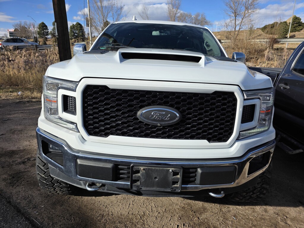 Oxford White 2018 Ford F-150 Lariat 4WD 10-Speed Automatic 5.0L V8 4WD, 110V/400W Outlet, 2nd Row Heated Seats, 4x4 FX4 Off-Road Bodyside Decal, Adaptive Cruise Control, Alloy wheels, Automatic High Beam w/Rain-Sensing Wipers, BLIS Blind Spot Information System, Chrome 2-Bar Grille w/4 Minor Bars, Chrome Angular Step Bars, Chrome Door & Tailgate Handles w/Body-Color Bezel, Chrome Skull Caps on Exterior Mirrors, Equipment Group 502A Luxury, FX4 Off-Road Package, Heated Steering Wheel, Hill Descent Control, Lane-Keeping System, Lariat Chrome Appearance Package, Leather-Trimmed Bucket Seats, LED Sideview Mirror Spotlights, Off-Road Tuned Front Shock Absorbers, Power Glass Sideview Mirr w/Chrome Skull Caps, Power Tilt/Telescoping Steering Column w/Memory, Quad Beam LED Headlamps & LED Taillamps/Fog Lamps, Radio: B&O Play Premium Audio System, Remote Start System w/Remote Tailgate Release, Reverse Sensing System, Single-Tip Chrome Exhaust, SYNC Connect, Twin Panel Moonroof, Universal Garage Door Opener, Voice-Activated Touchscreen Navigation System, Wheels: 18 Chrome-Like PVD, Windshield Wiper De-Icer.