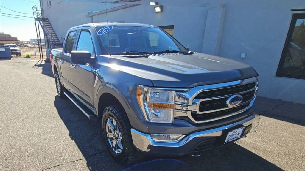 Gray 2021 Ford F-150 XLT 4WD 10-Speed Automatic 2.7L V6 EcoBoost 4WD, ABS brakes, Alloy wheels, Compass, Electronic Stability Control, Heated door mirrors, Illuminated entry, Low tire pressure warning, Remote keyless entry, Traction control.