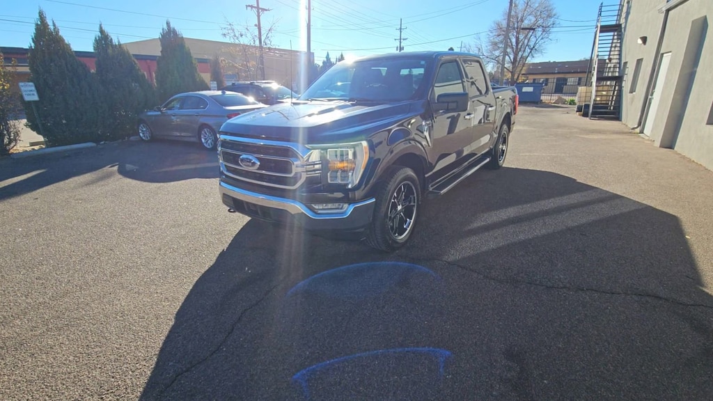Blue 2022 Ford F-150 XLT 4WD 10-Speed Automatic 3.3L V6 4WD, ABS brakes, Alloy wheels, Compass, Electronic Stability Control, Heated door mirrors, Illuminated entry, Low tire pressure warning, Remote keyless entry, Traction control.