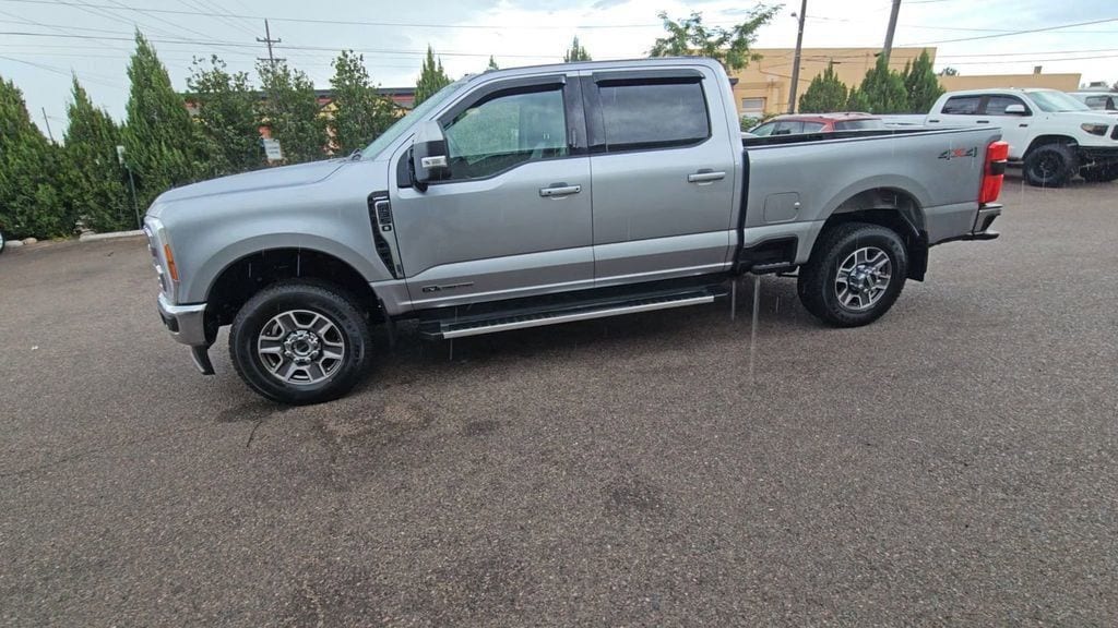 Iconic Silver Metallic 2023 Ford F-350SD Lariat 4WD 10-Speed Automatic Power Stroke 6.7L V8 DI 32V OHV Turbodiesel 4WD, ABS brakes, Alloy wheels, Compass, Electronic Stability Control, Front dual zone A/C, Heated door mirrors, Heated front seats, Heated rear seats, Illuminated entry, Low tire pressure warning, Navigation system: Connected Navigation, Remote keyless entry, Traction control.