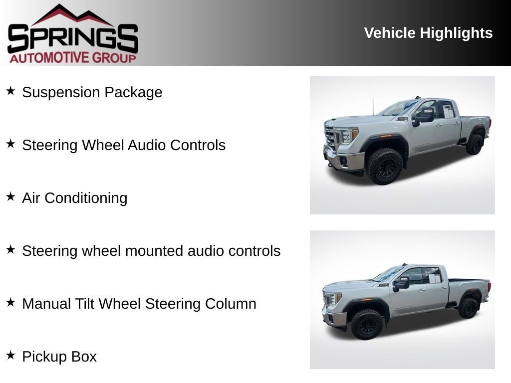Silver 2022 GMC Sierra 2500HD SLE 4WD 6-Speed Automatic 6.6L V8 6-Speed Automatic, 4WD, Dark Walnut/Dark Ash Gray Cloth, Air Conditioning, Manual Tilt Wheel Steering Column, Pickup Box, Steering Wheel Audio Controls, Steering wheel mounted audio controls, Suspension Package.