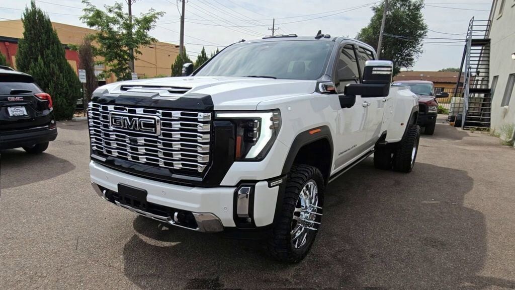 White Frost Tricoat 2024 GMC Sierra 3500HD Denali 4WD 10-Speed Automatic Duramax 6.6L V8 Turbodiesel 10-Speed Automatic, 4WD, Jet Black Leather, 120-Volt Bed Mounted Power Outlet, 120-Volt Instrument Panel Power Outlet, 2 Charge-Only Rear USB Ports, 2 Charge/Data USB Ports Inside Center Console, 2 USB Ports, 2-Speed Active Transfer Case, Adaptive Cruise Control, Auto-Dimming Inside Rearview Mirror w/Camera, Bed View Camera w/2 Trailer Camera Provisions, Bose Premium 7-Speaker Sound System, Deep-Tinted Glass, Electric Rear-Window Defogger, Floor-Mounted Center Console, Front Rain-Sensing Wipers, HD Surround Vision, Heated 2nd Row Outboard Seats, Heated Driver & Front Outboard Passenger Seats, Integrated Trailer Brake Controller, Keyless Open & Start, LED Cargo Area Lighting, LED Smoked Amber Roof Marker Lamps, Manual Tilt-Wheel/Telescoping Steering Column, Multicolor 15" Diagonal Head-Up Display, Polished Exhaust Tip, Power Front Windows w/Passenger Express Up/Down, Power Sliding Rear Window w/Defogger, Power Sunroof, Preferred Equipment Group 5SA, Push Button Start, Rear Cross Traffic Alert, Remote Vehicle Starter System, Safety Alert Seat, Signature Chrome Denali Grille, SiriusXM w/360L, Spray-On Pickup Bedliner w/Denali Logo, Steering Wheel Audio Controls, Technology Package, Trailer Camera Provisions, Trailer Side Blind Zone Alert, Ultrasonic Front & Rear Park Assist, Unauthorized Entry Theft-Deterrent System, Universal Home Remote, Ventilated Driver & Front Passenger Seats, Wireless Charging, Wireless Phone Projection.
