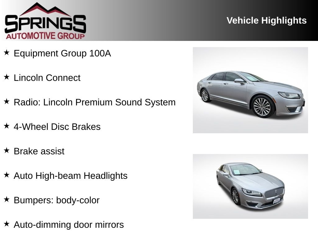 Radiance 2020 Lincoln MKZ Standard FWD 6-Speed Automatic with Select-Shift 2.0L I4 4-Wheel Disc Brakes, Auto High-beam Headlights, Auto-dimming door mirrors, Brake assist, Bumpers: body-color, Equipment Group 100A, Lincoln Connect, Radio: Lincoln Premium Sound System, SYNC 3 Communications & Entertainment System.