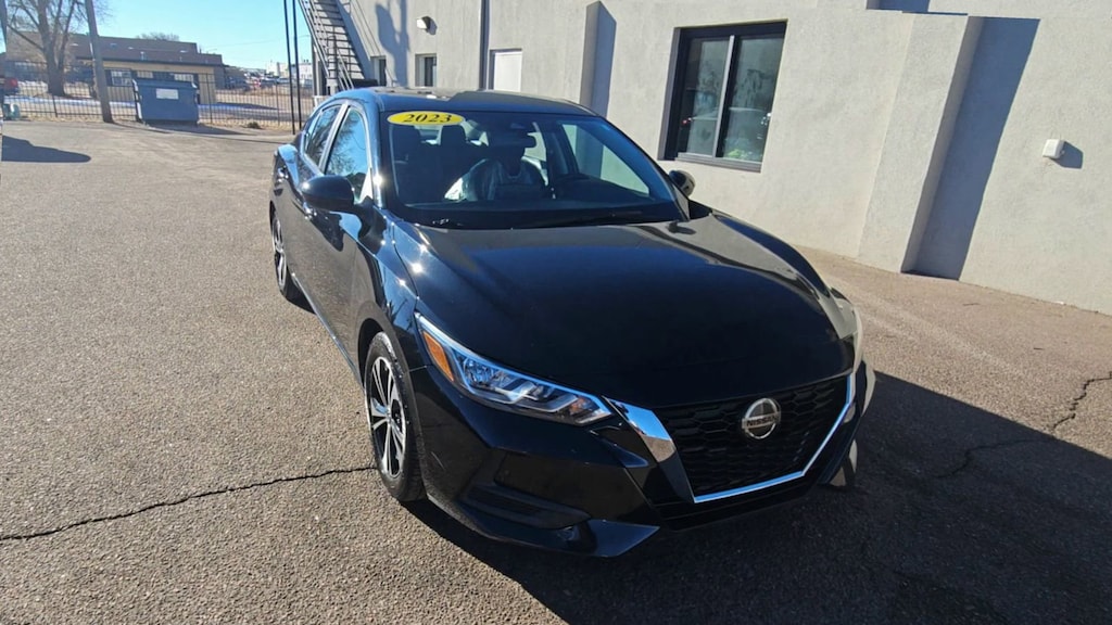 Super Black 2023 Nissan Sentra SV FWD CVT with Xtronic 2.0L DOHC CVT with Xtronic, Charcoal Cloth, 16 Alloy Wheels, Electronic Stability Control, Midyear Change, Passenger door bin, Rear side impact airbag, Remote keyless entry, Steering wheel mounted audio controls.