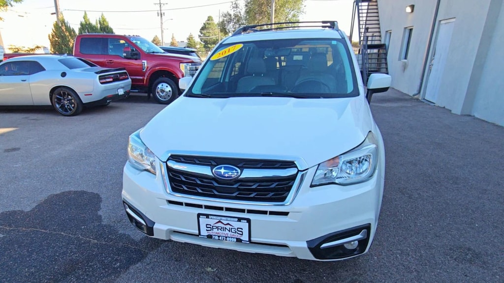 SPLASH GUARDS -inc: Part number J1010SG300, REAR BUMPER COVER -inc: Part number E771SSG350, GRAY, PERFORATED LEATHER-TRIMMED UPHOLSTERY, CRYSTAL WHITE PEARL, BASE MODEL, AUTO-DIMMING MIRROR W/COMPASS & HOMELINK -inc: Part number H501SSG301, ALL-WEATHER FLOOR MATS -inc: Part number J501SSG200, AERO CROSS BAR SET -inc: Part number E361SSG000, Wheels: 17 Alloy, Variable Intermittent Wipers w/Heated Wiper Park. This Subaru Forester has a dependable Regular Unleaded H-4 2.5 L/152 engine powering this Variable transmission.