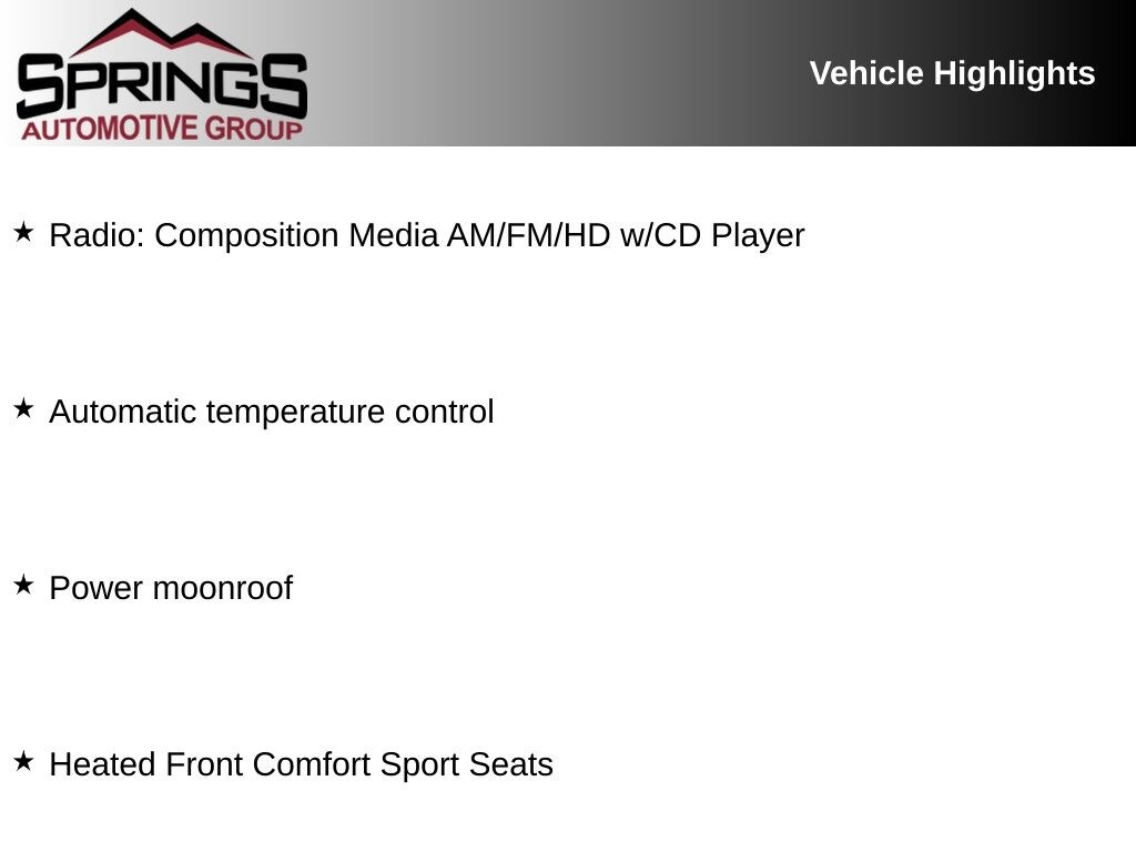 Titan Black/Moonrock Gray Premium Synthetic, Automatic temperature control, Heated Front Comfort Sport Seats, Power moonroof, Radio: Composition Media AM/FM/HD w/CD Player. Clean CARFAX.