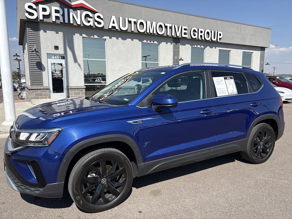 Blue 2023 Volkswagen Taos 4D Sport Utility 1.5T SE AWD 7-Speed DSG Automatic with Tiptronic 1.5L I4 Turbocharged DOHC 16V LEV3-SULEV30 158hp